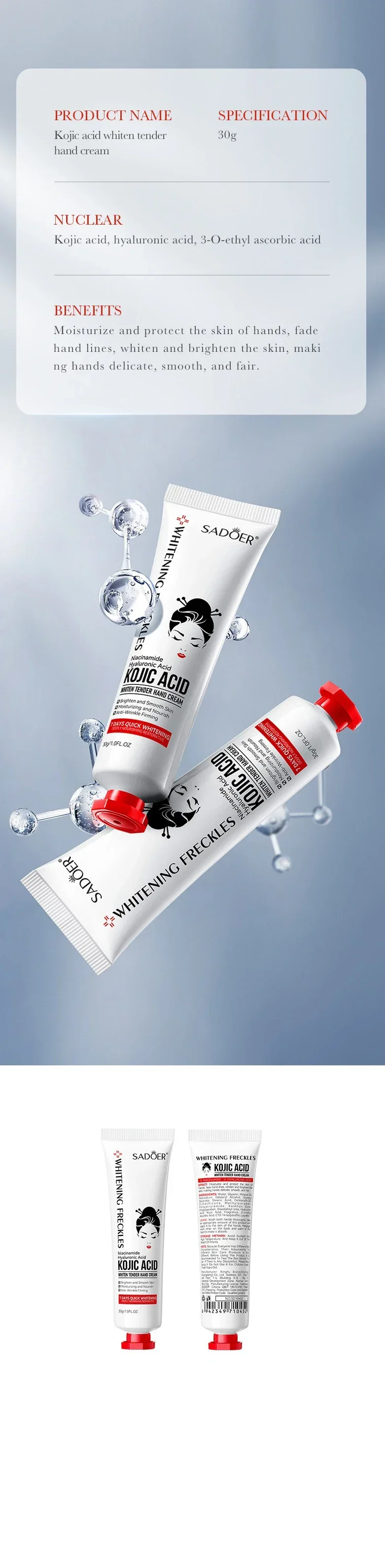 Kojic Acid Anti-wrinkle Hand Cream Skin Soften Nourish Anti-drying Whitening Moisturizing Korean SkinCare Cracked Repair Product