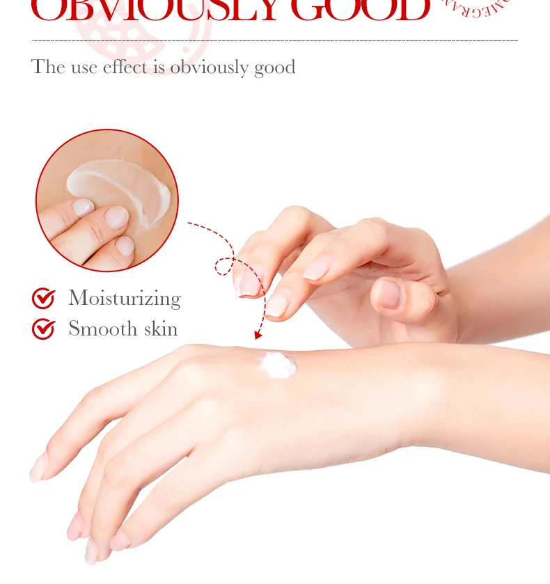 ▶Add moisture to your hands, leaving your hands soft and smooth, revealing delicate hands. Helps replenish moisture needed by the skin, helping to improve dry, white and brighten skin.